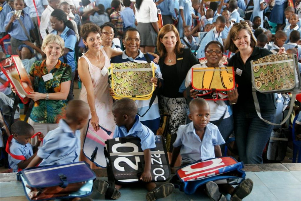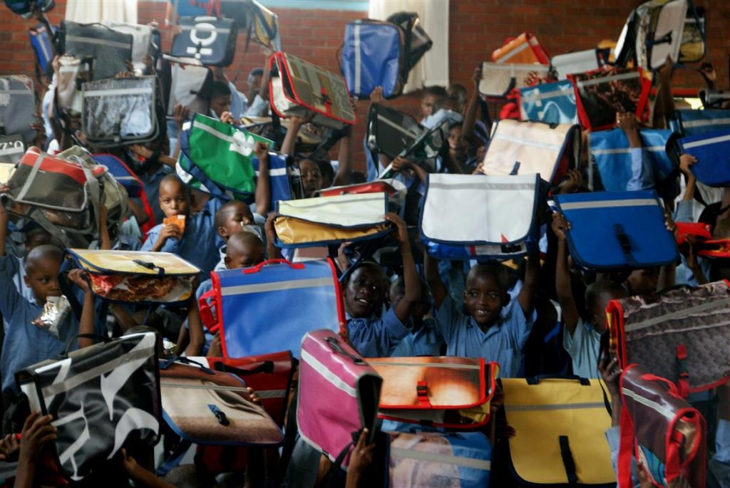 “When we heard about the DeskBags initiative and the very creative and cost-effective way in which they are answering a very real need in South Africa, it simply made sense to hand over our old billboards to turn them into functional school bags, while providing added employment streams for the underprivileged women who make them,” says Mike Vermaak, general manager of Melrose Arch.